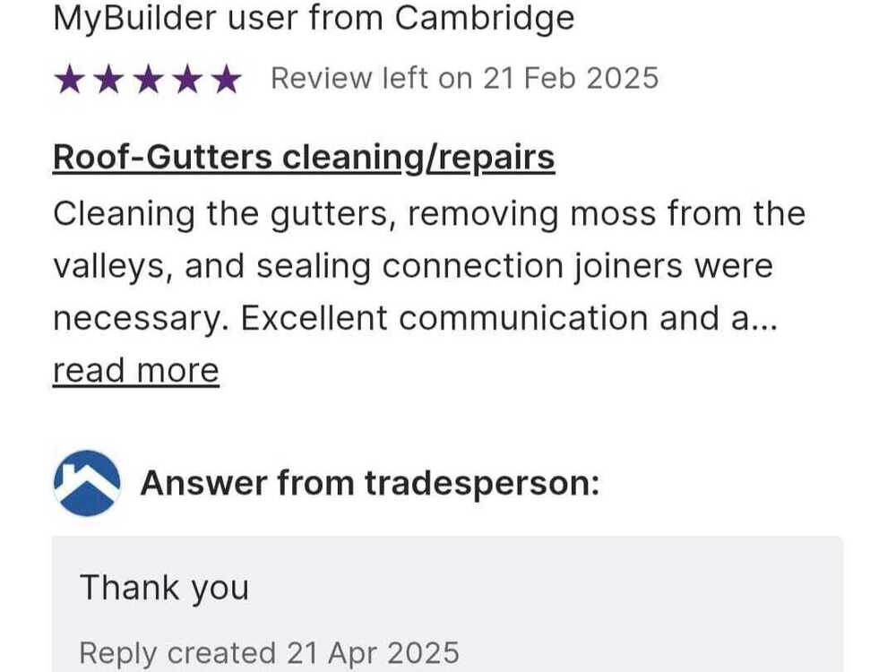 Other services we offer: General roof repairs, roof cleaning, and bird-proofing solar panels.